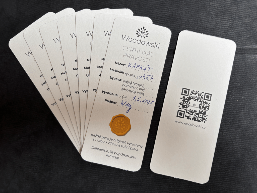 Dřevo mi můžete poslat. A já z něj udělám psací nástroj, který bude mít duši. Každé pero dostane svůj certifikát.